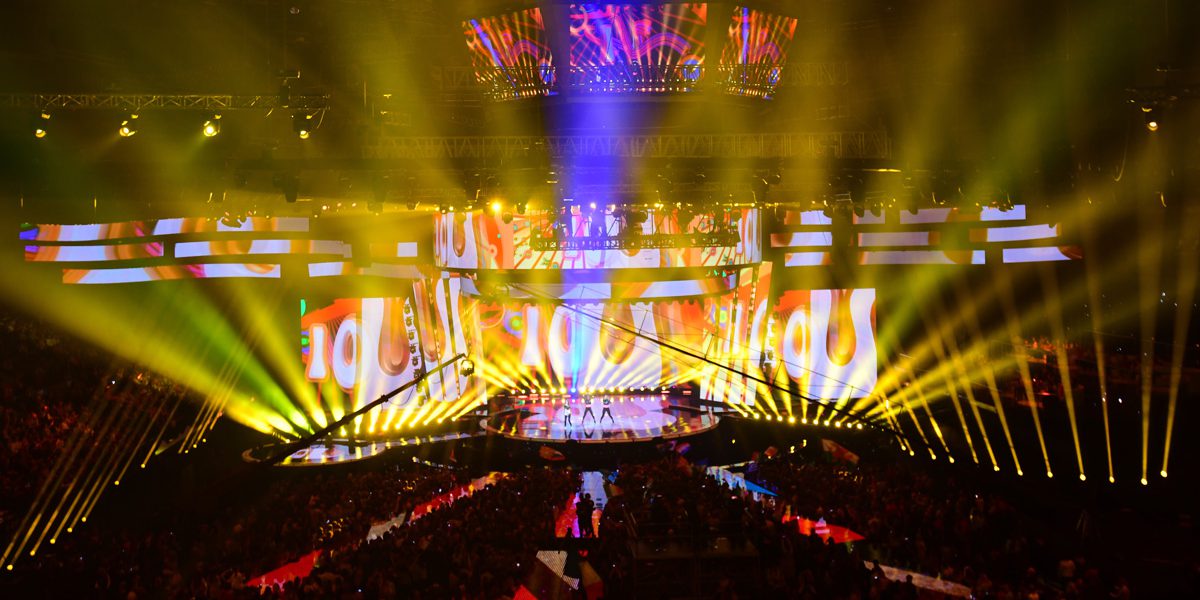 The predominantly Claypaky rig for JESC included Claypaky Scenius Unico, Claypaky Mythos 2, Claypaky Scenius Spot, Claypaky Sharpy, Claypaky Axcor Beam 300, Axcor Profile 600, Claypaky A.leda B-EYE K20, Claypaky Stormy CC, Claypaky Sharpy Wash, Claypaky Sharpy Wash, Claypaky Shotlight Wash, and Claypaky Alpha Spot 1500.
