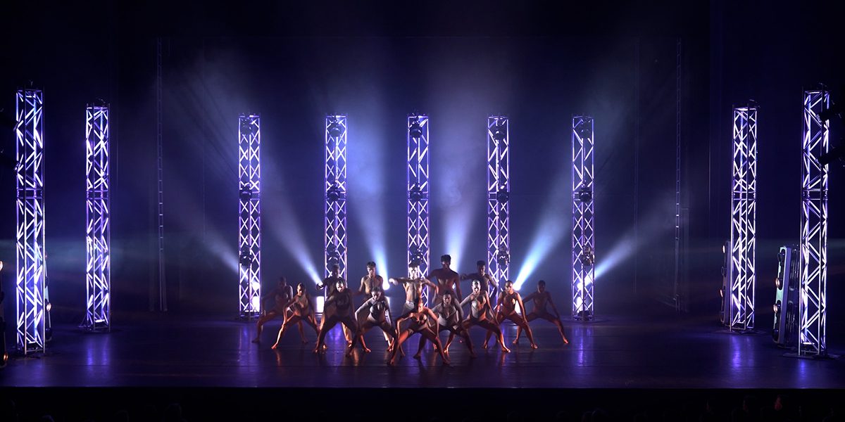The nine reasonably high truss towers surrounding the stage was the only set on a stripped back and bare NIDA stage. These were warmed with ShowPro Quad 18s to use at various instances during the show. Darcy did light the rear wall during one particular routine which gave an empty warehouse feel to quite an emotive piece of work.